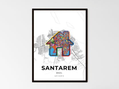 Our map of Santarem Brazil shows minimalist designed roads, railroads and waterways combined with colorful urban areas within one icon.