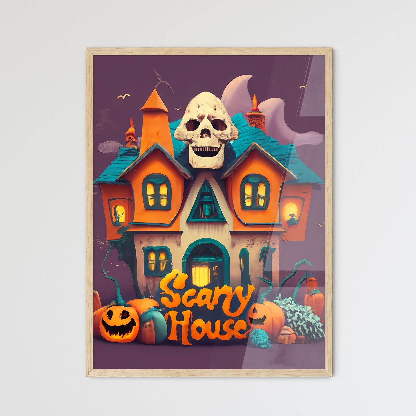 Step into a realm of spooky elegance with this captivating "Scary House - A House With A Skull On Top Of It Art Print." This vibrant painting masterfully captures the essence of a haunting yet alluring abode. As your gaze meets the intricate details, you'll notice a house adorned with a prominent skull on its rooftop, casting an eerie shadow over the surroundings. The vibrant colors and expressive brushstrokes create an atmosphere of mystery and intrigue, making this print a captivating centerpiece for any room. Whether as a unique gift or an enigmatic addition to your home decor, this art piece is sure to spark conversations and ignite imagination.
