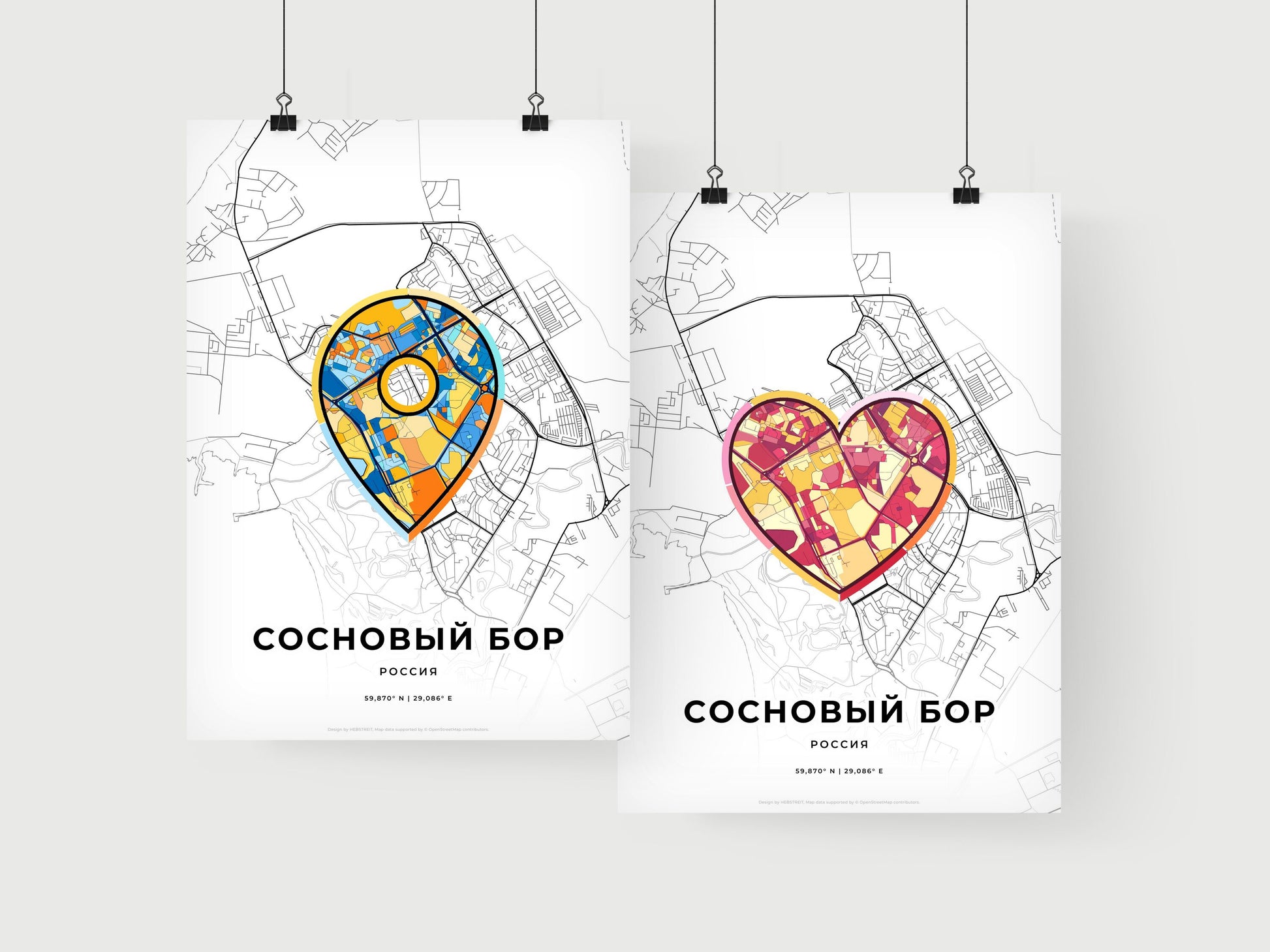 Sosnovy Bor Russia, minimal art map with a colorful icon