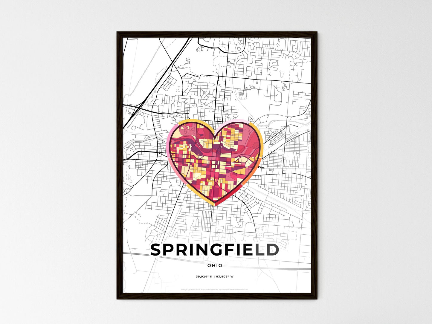 Immerse yourself in the vibrant legacy of Springfield, Ohio, captured in this stunning abstract map. As one of the birthplace of the iconic inventions like the cash register and the pop sensation "The Four Seasons", this city holds a special place in the tapestry of American history and innovation. Its vibrant arts scene, rich cultural heritage, and charming historic architecture continue to enchant visitors and locals alike. This map is not just a decor piece but a tribute to the spirit of ingenuity and creativity that defines Springfield, Ohio, making it a must-have for collectors, history buffs, and all who appreciate the beauty of urban art.