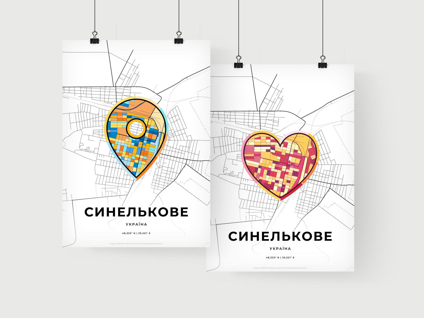 Synelnykove Ukraine, minimal art map with a colorful icon