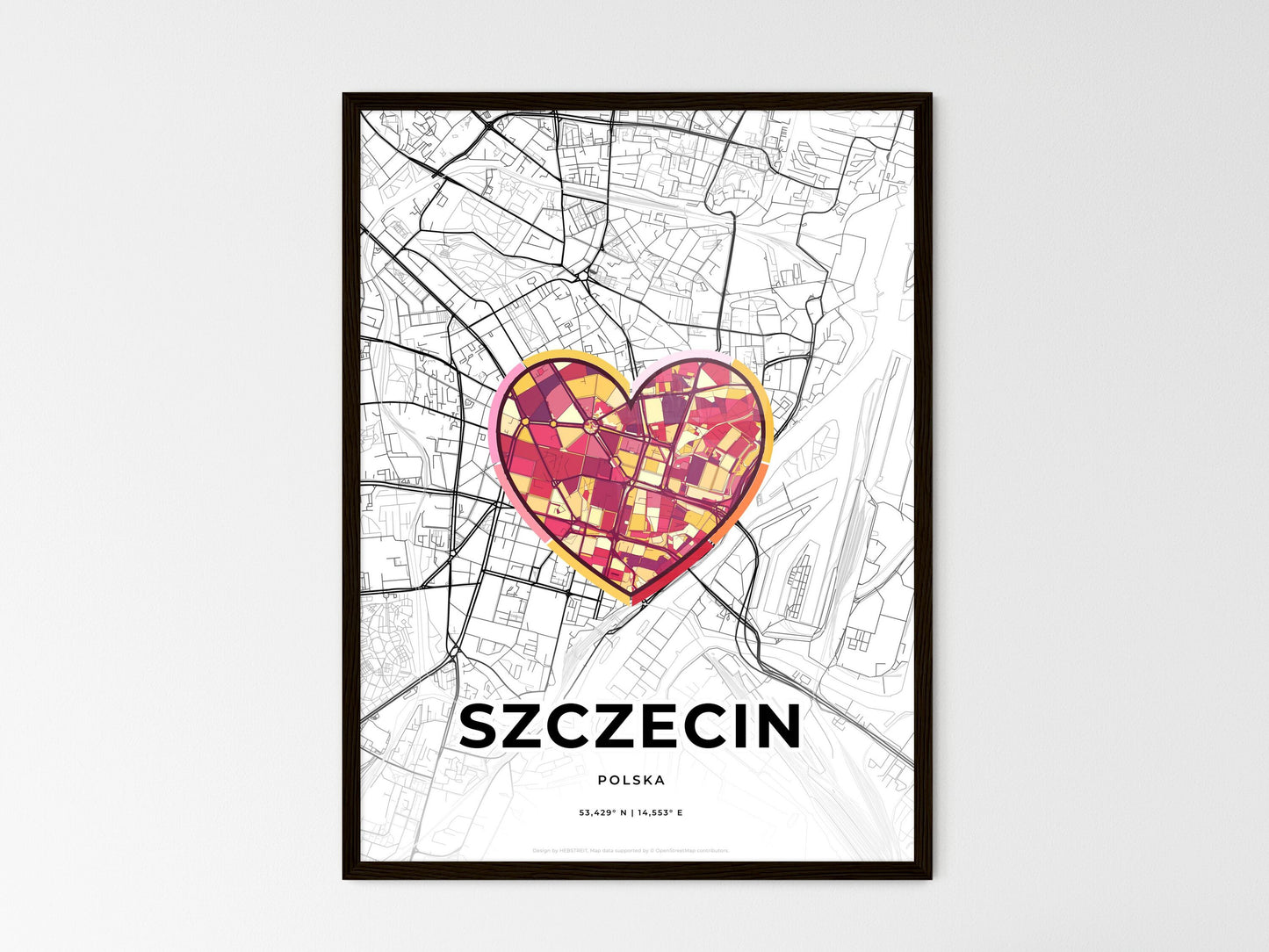 Our map of Szczecin Polska shows minimalist designed roads, railroads and waterways combined with colorful urban areas within one icon.