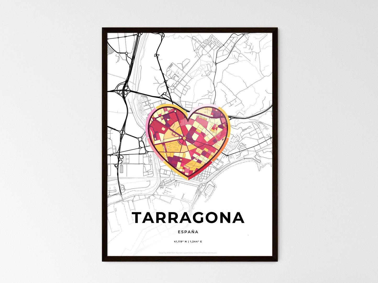 Our map of Tarragona España shows minimalist designed roads, railroads and waterways combined with colorful urban areas within one icon.