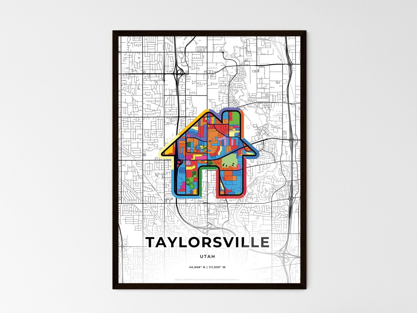 Our map of Taylorsville Utah shows minimalist designed roads, railroads and waterways combined with colorful urban areas within one icon.