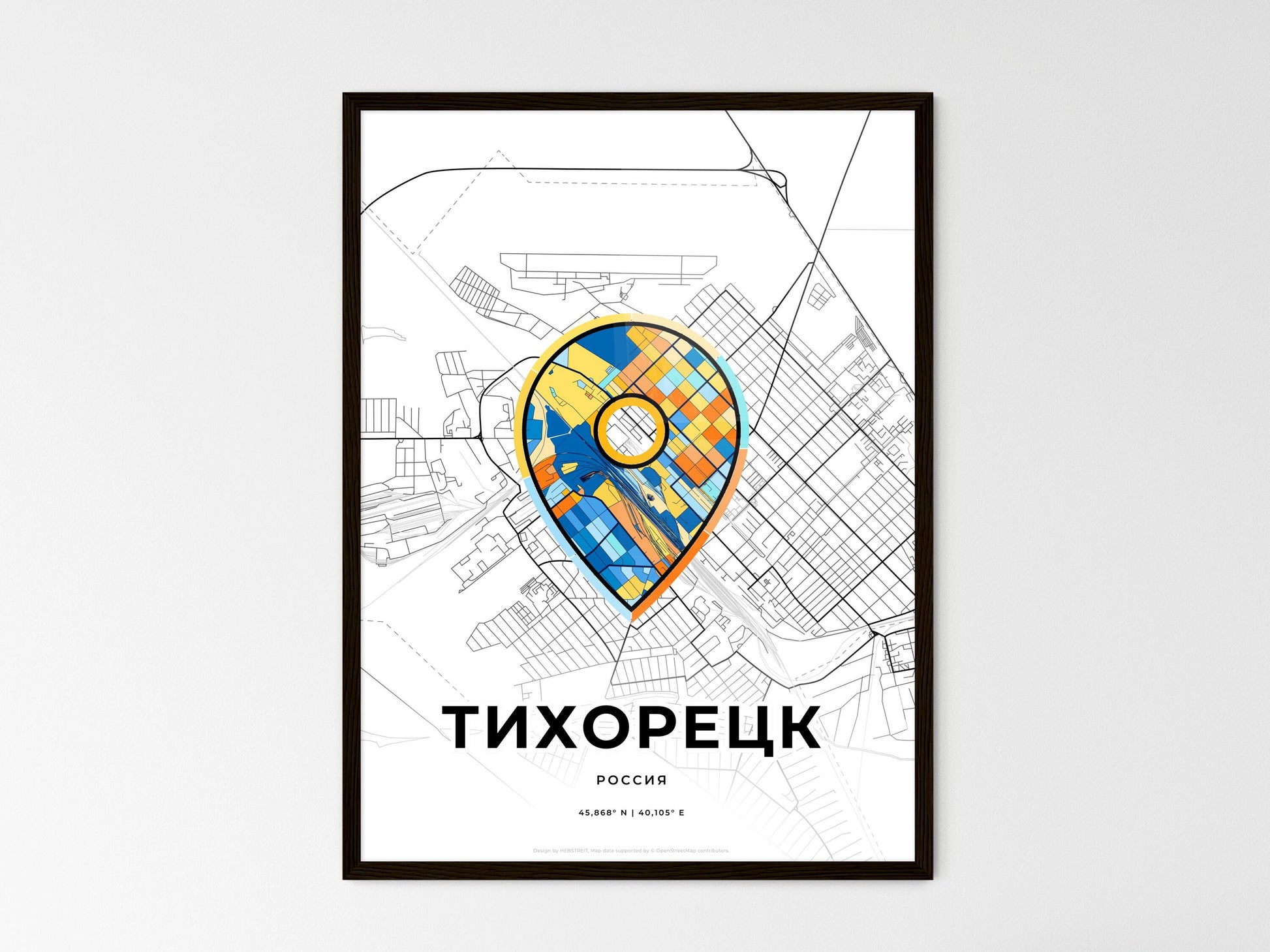 Tikhoretsk Russia, minimal art map with a colorful icon