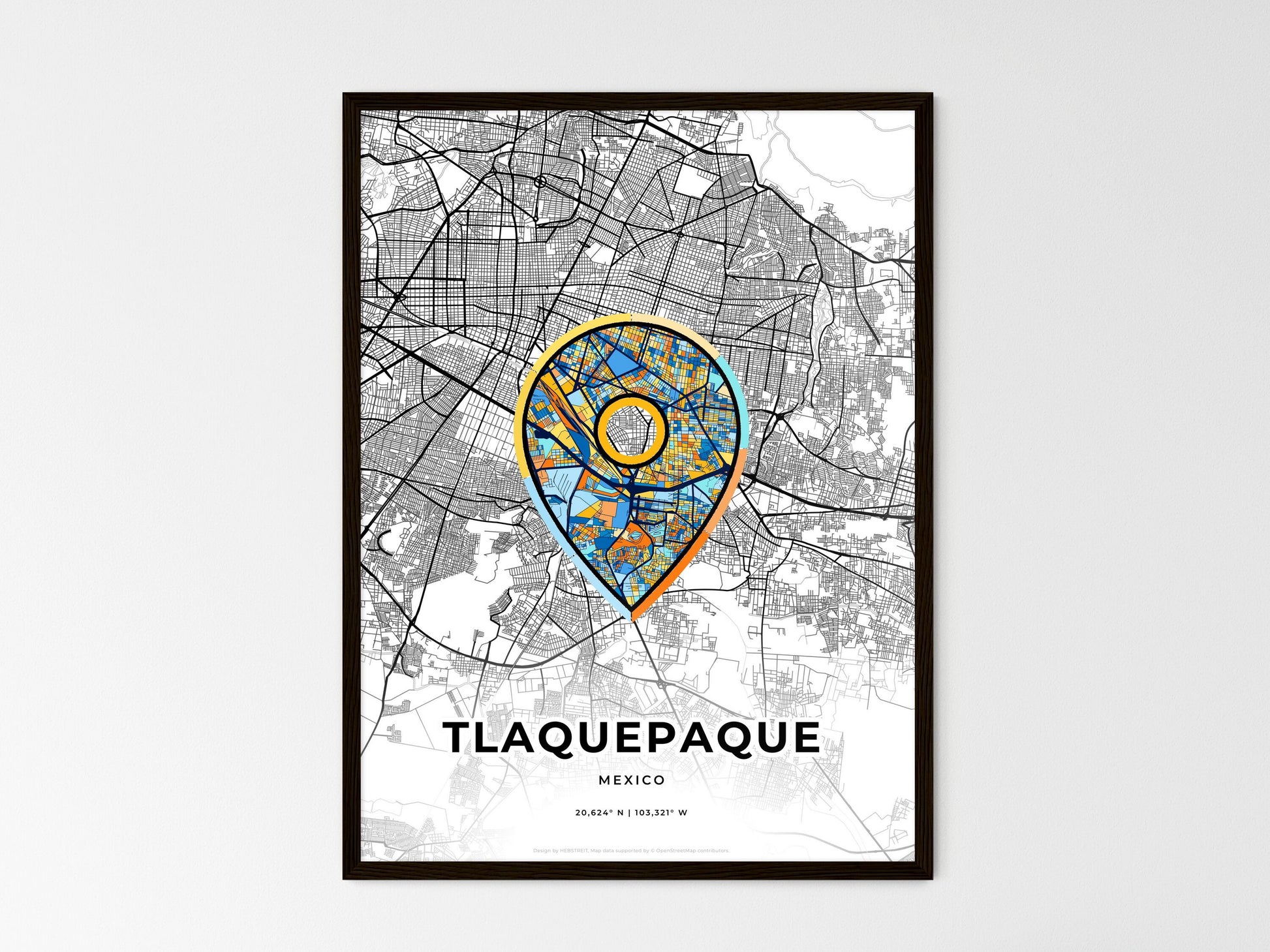 Tlaquepaque Mexico, minimal art map with a colorful icon