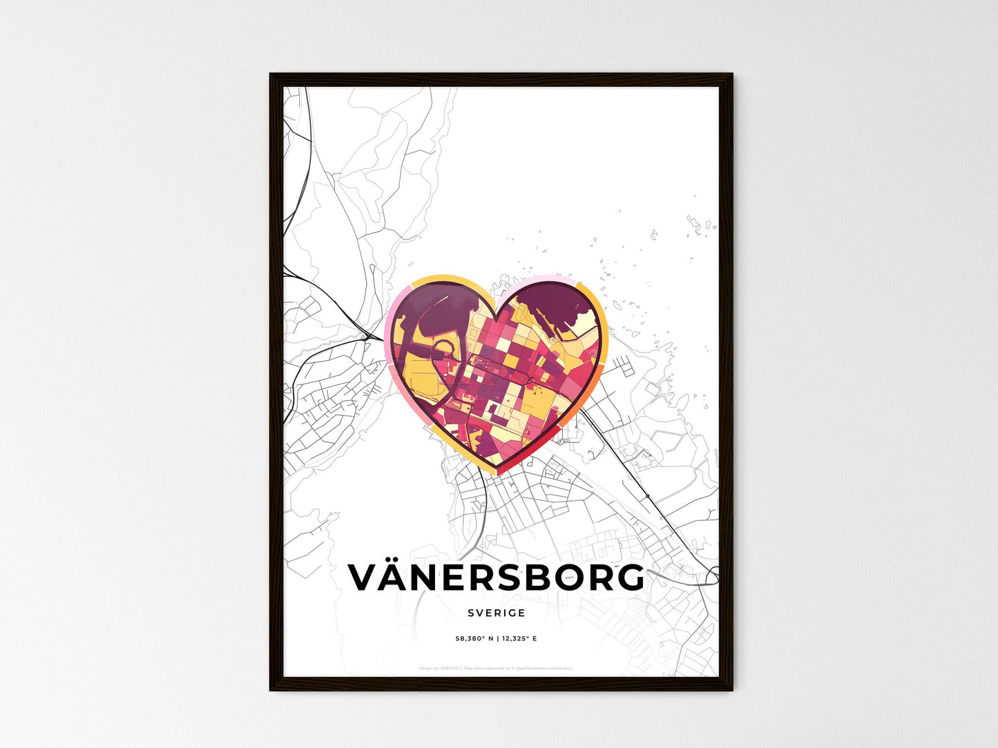 Our map of Vänersborg Sverige shows minimalist designed roads, railroads and waterways combined with colorful urban areas within one icon.