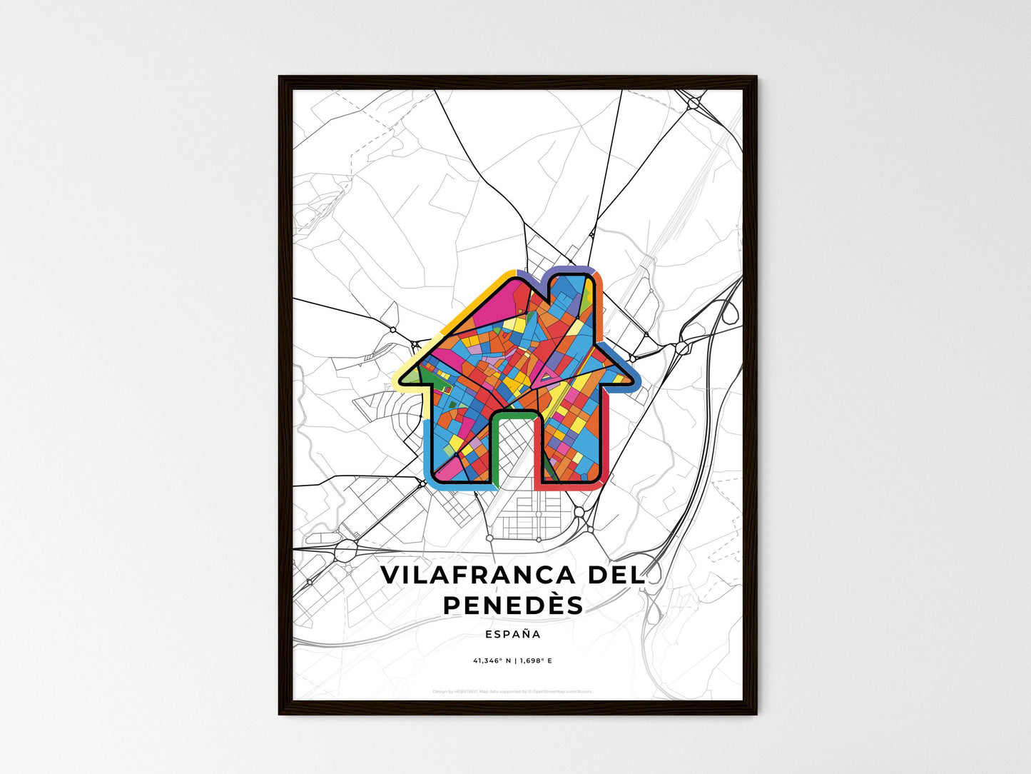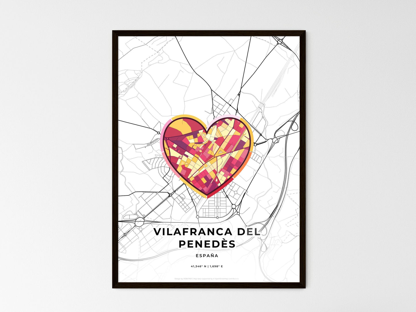 Immerse yourself in the vibrant culture of Vilafranca del Penedès, Spain, through this captivating art map. This minimal yet striking print captures the essence of this charming city, known for its rich history, stunning architecture, and world-renowned vineyards. The abstract illustration invites you to explore Vilafranca's hidden gems, from its bustling streets to its tranquil parks and historic landmarks. Whether you're a couple seeking a unique gift or an art enthusiast seeking inspiration for your home, this map not only adorns your walls but also transports you to the heart of one of Spain's most enchanting cities.
