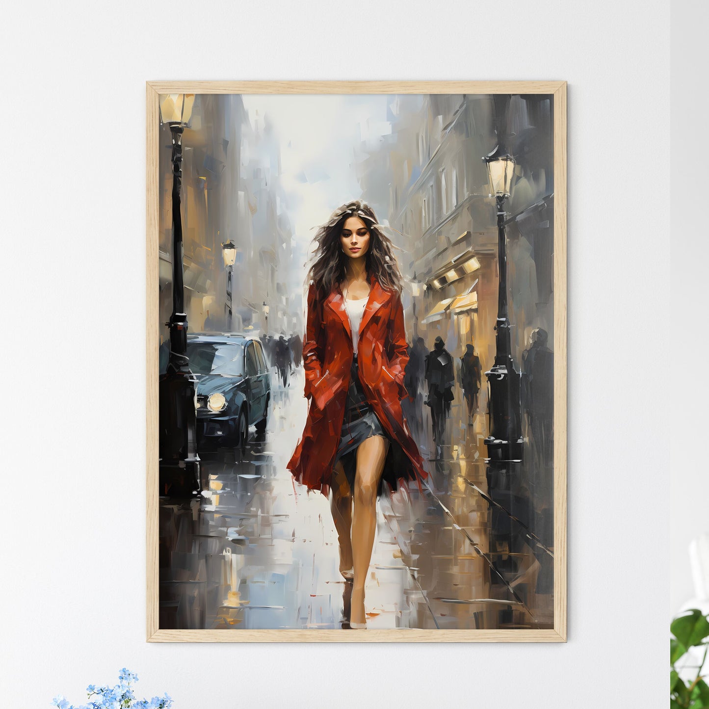 Immerse yourself in the captivating portrait of a woman striding through a rain-drenched street. This enigmatic image captures the essence of both urban life and artistic expression. The woman's face is obscured, drawing the viewer's attention to her ethereal presence and the vibrant colors that dance across the wet pavement. The brushstrokes are bold and fluid, creating a sense of movement and energy that complements the woman's confident stride. Whether as a gift for an art enthusiast or an enchanting addition to your own home decor, this print embodies the dynamic intersection of art and everyday life, evoking a sense of mystery and inspiration within its viewers.