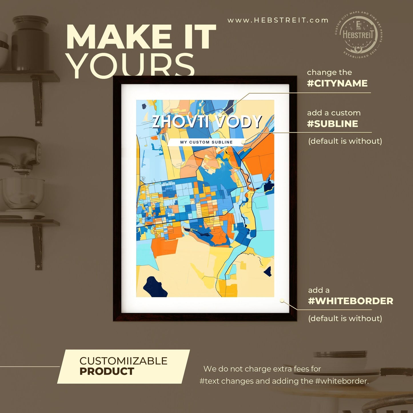 Zhovti Vody Ukraine Vibrant Colorful Art Map Poster